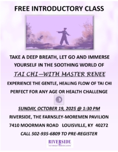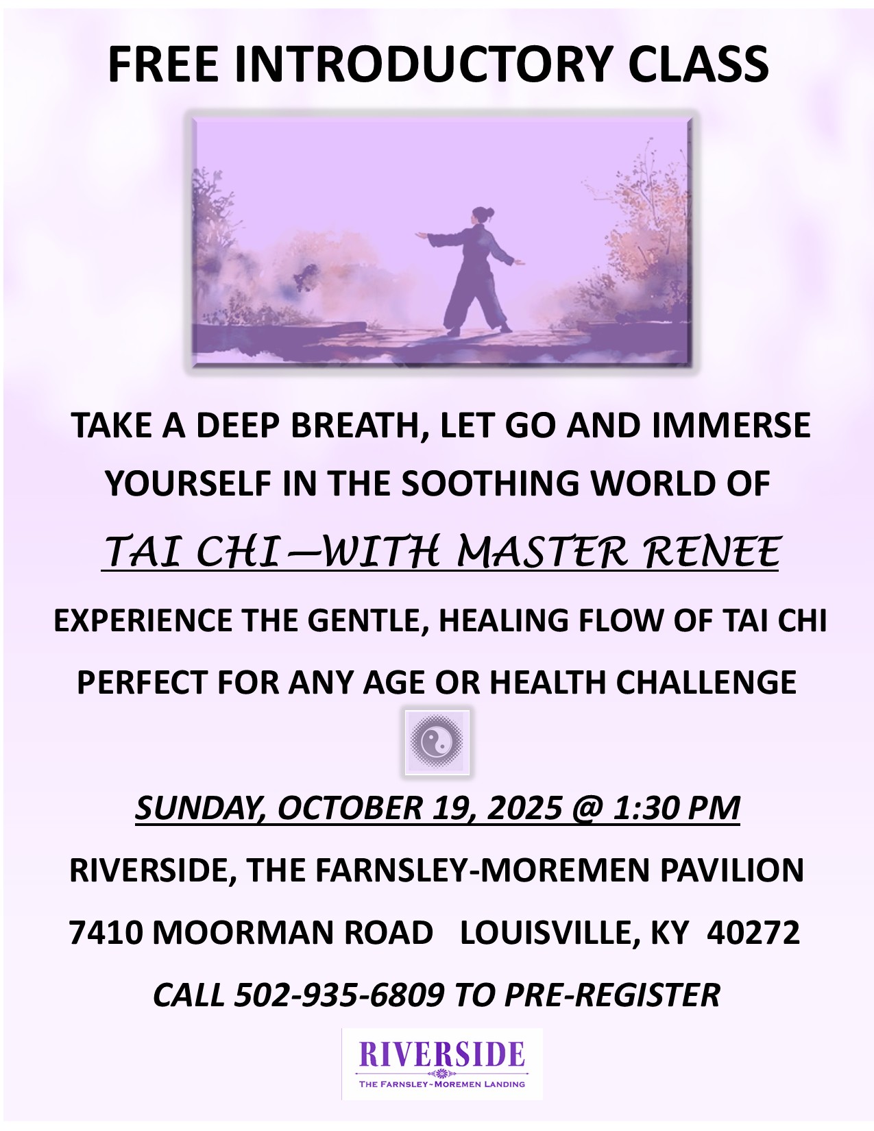 FREE Introductory Tia Chi Class under our beautiful open-air pavilion! Experience the gentle, healing flow of Tai Chi. This class is perfect for any age or health challenge.