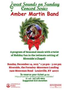 Get into the holiday spirit! Join us for the sweet sounds of Amber Martin performing seasonal music with a twist of fun in the intimate setting of Riverside’s historic chapel! Get your ticket for Sunday, December 14, 2025 @ 1:30 PM. Tickets: $10/person. Space is limited. We look forward to seeing you there!